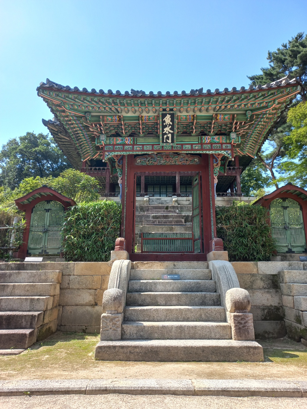 Changdeokgung Juhapru is a Joseon Dynasty building in Changdeokgung Palace. It was designated as Korea's Treasure No. 1769 on August 16, 2012. There is Gyujanggak Pavilion in the main pavilion, which is a royal academic research institution and royal library in the late Joseon Dynasty, and is now like the National Library of Korea. The poems, writings, names, Confucianism, and preferences of previous kings were kept and collected. On November 5, 1776, after King Jeongjo was crowned, Gyujanggak was built to the north of Geumwon in Changdeokgung Palace. Kyujanggak's 'Gyujang' refers to the writings or poems of the king. At this time, Gyujanggak served as a royal library for collecting and storing writings and books of successive kings, as its name suggests. 창덕궁 주합루는 창덕궁에 있는 조선시대의 건축물이다. 2012년 8월 16일 대한민국의 보물 제1769호로 지정되었다. 주합루에는 규장각이 있는데 이 규장각은 조선 후기의 왕실 학문 연구 기관이자 왕실 도서관으로, 지금의 국립중앙도서관 격이다. 역대 임금의 시문과 저작, 고명, 유교, 선보 등을 보관하고 수집하였다. 정조가 즉위한 뒤인 1776년 11월 5일에 창덕궁 금원의 북쪽에 규장각을 세웠다. 규장각의 ‘규장’은 임금의 시문이나 글을 가리키는 말이다. 이때 규장각은 그 이름대로 역대 왕의 글과 책을 수집 보관하기 위한 왕실 도서관의 역할을 하였다. 출처 : 직접 촬영, 직접 촬영